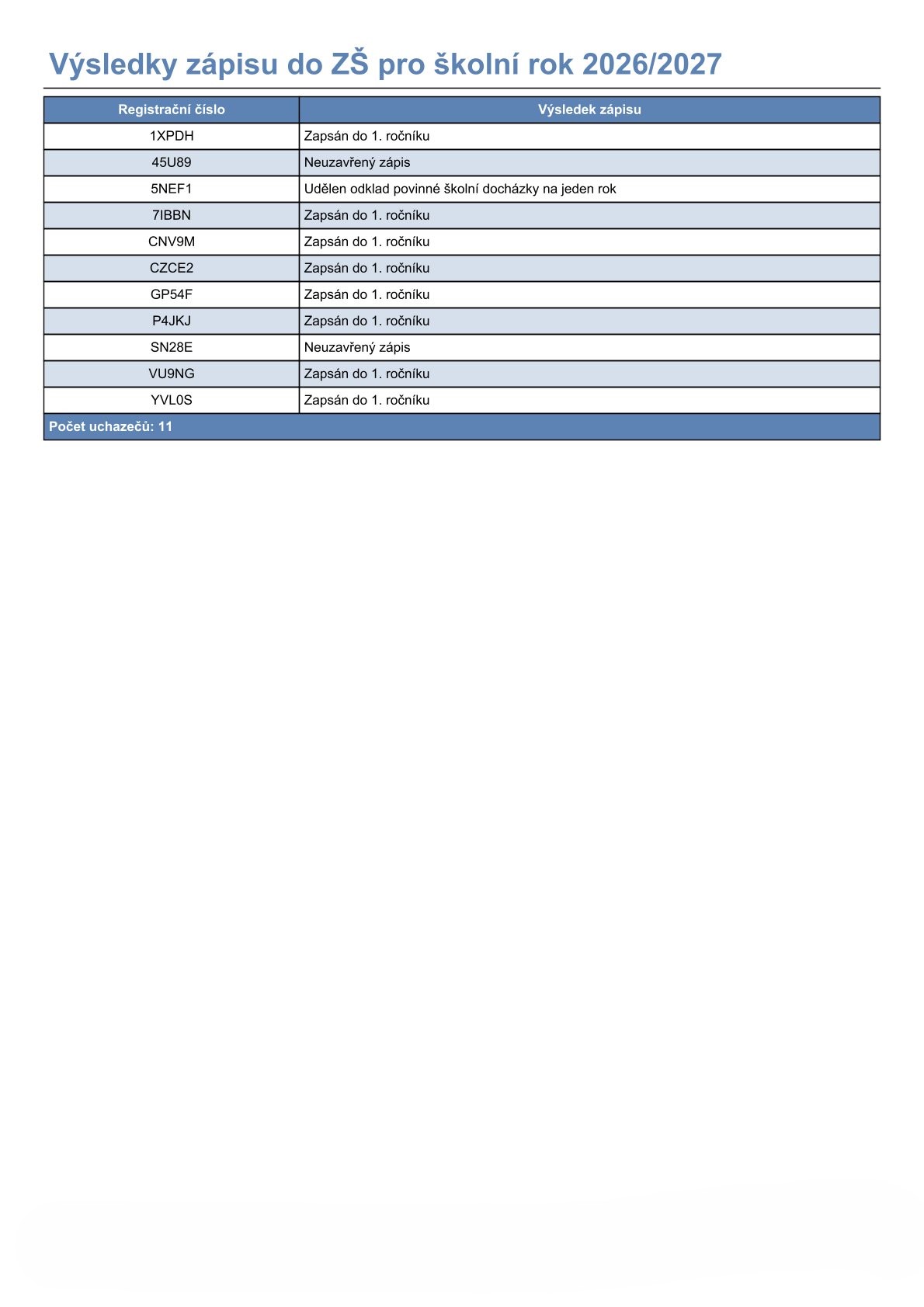 Zápis do ZŠ - výsledky